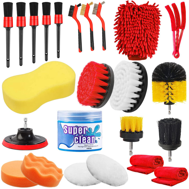 24 Pcs Pinceau de détail automatique éponge de cire lavage intérieur extérieur